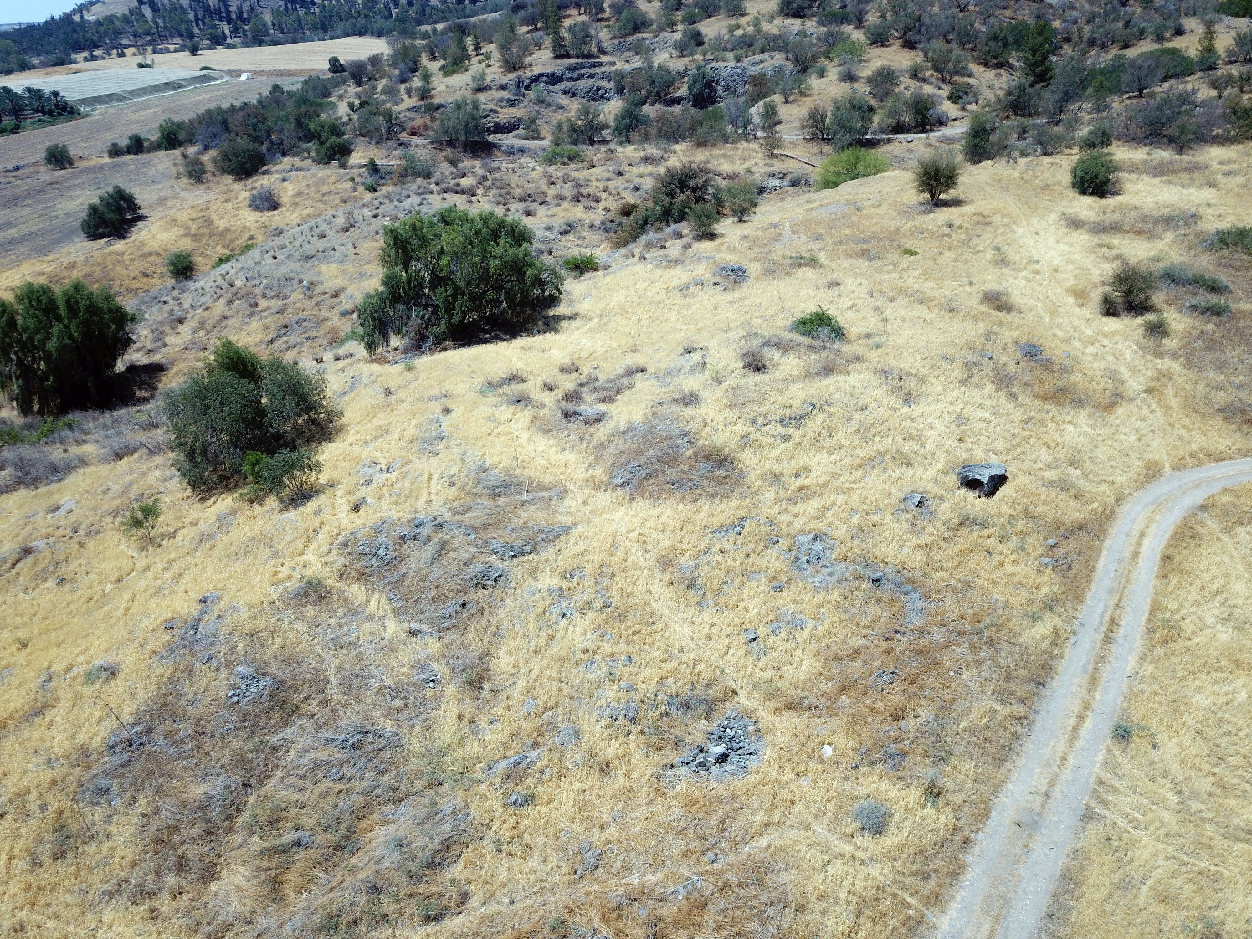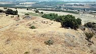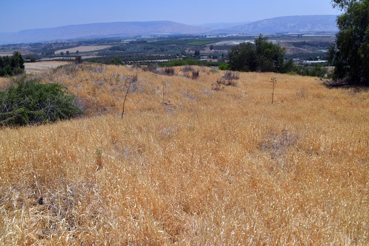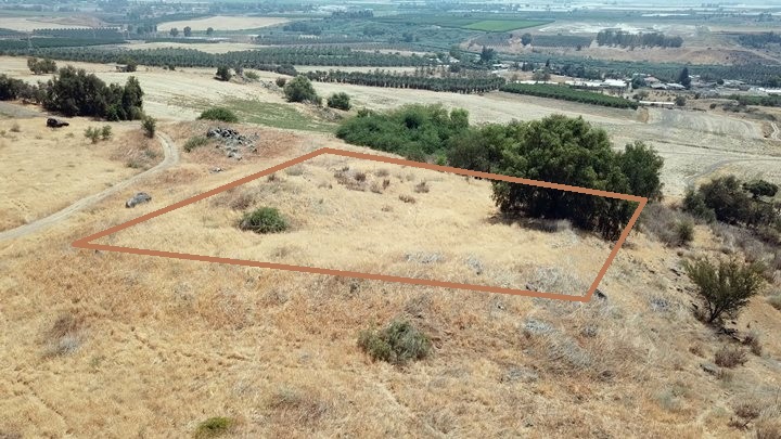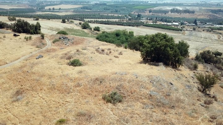 The Iron Age site is located in the center of this view, while the Roman/Byzantine period remains are scattered on the field to the east, that are not seen in this view.