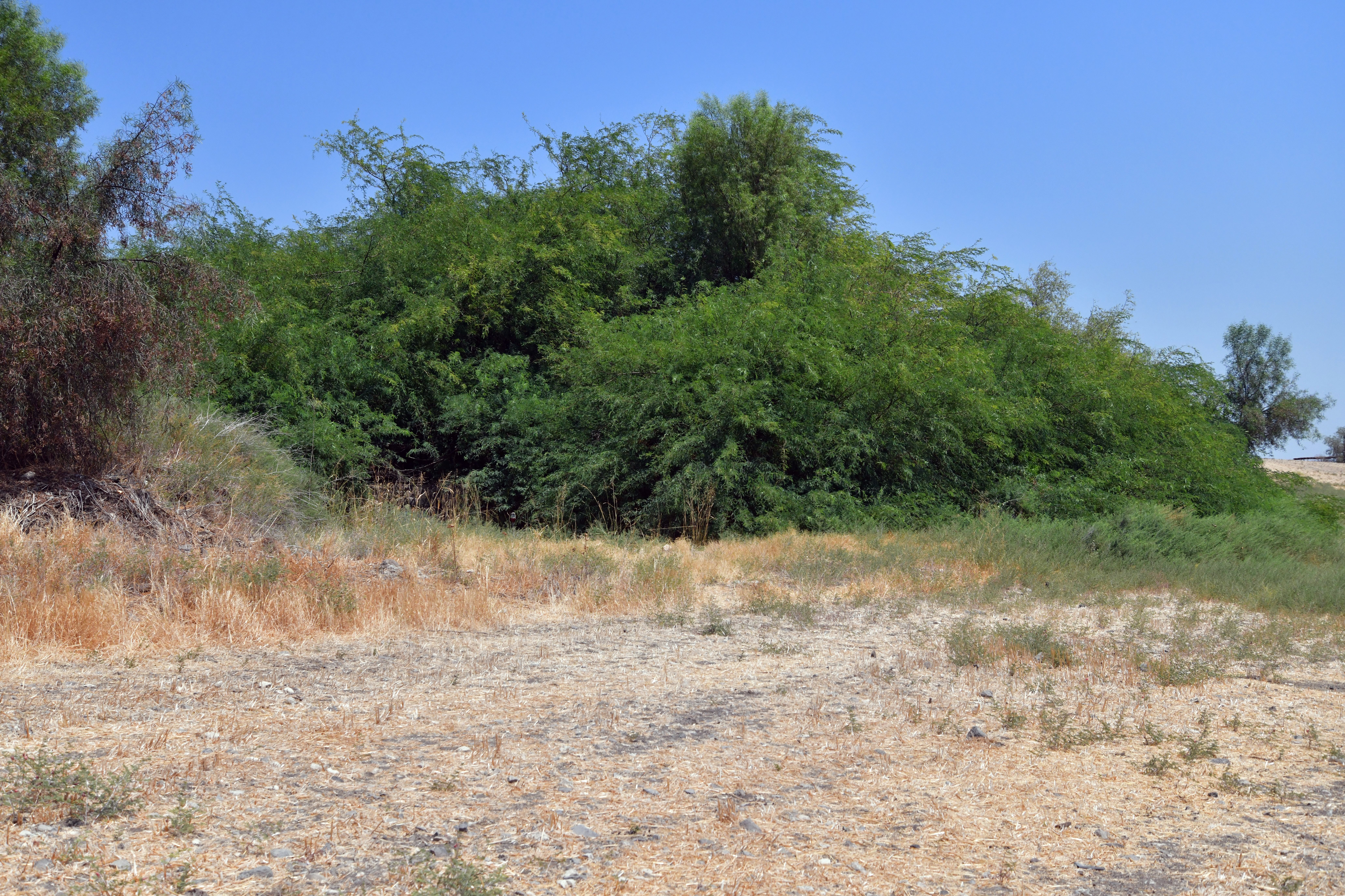 The next view is of the center of the site, captured from the south west corner. In the center of the site is a raised area, seen here behind the bush on the left. It is perhaps a base of a structure.