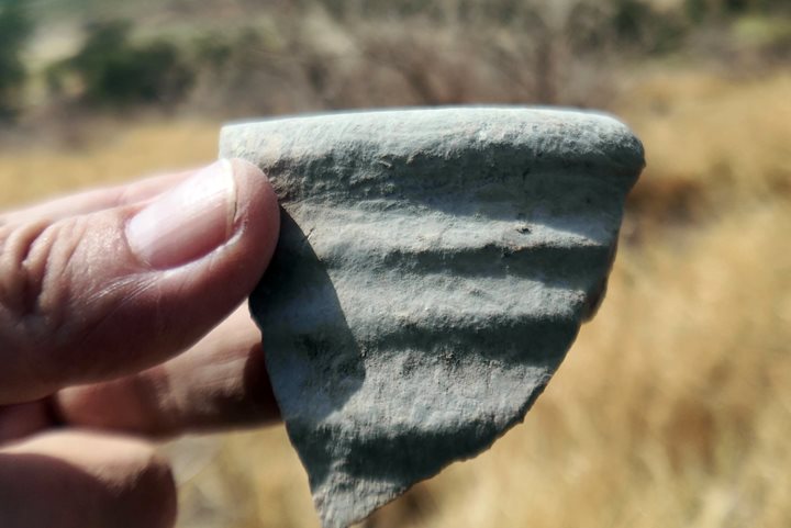 Along the eastern foothills are many holes that were cut by porcupines. In this hole we found a piece of an Iron Age “Hypo ” jar.