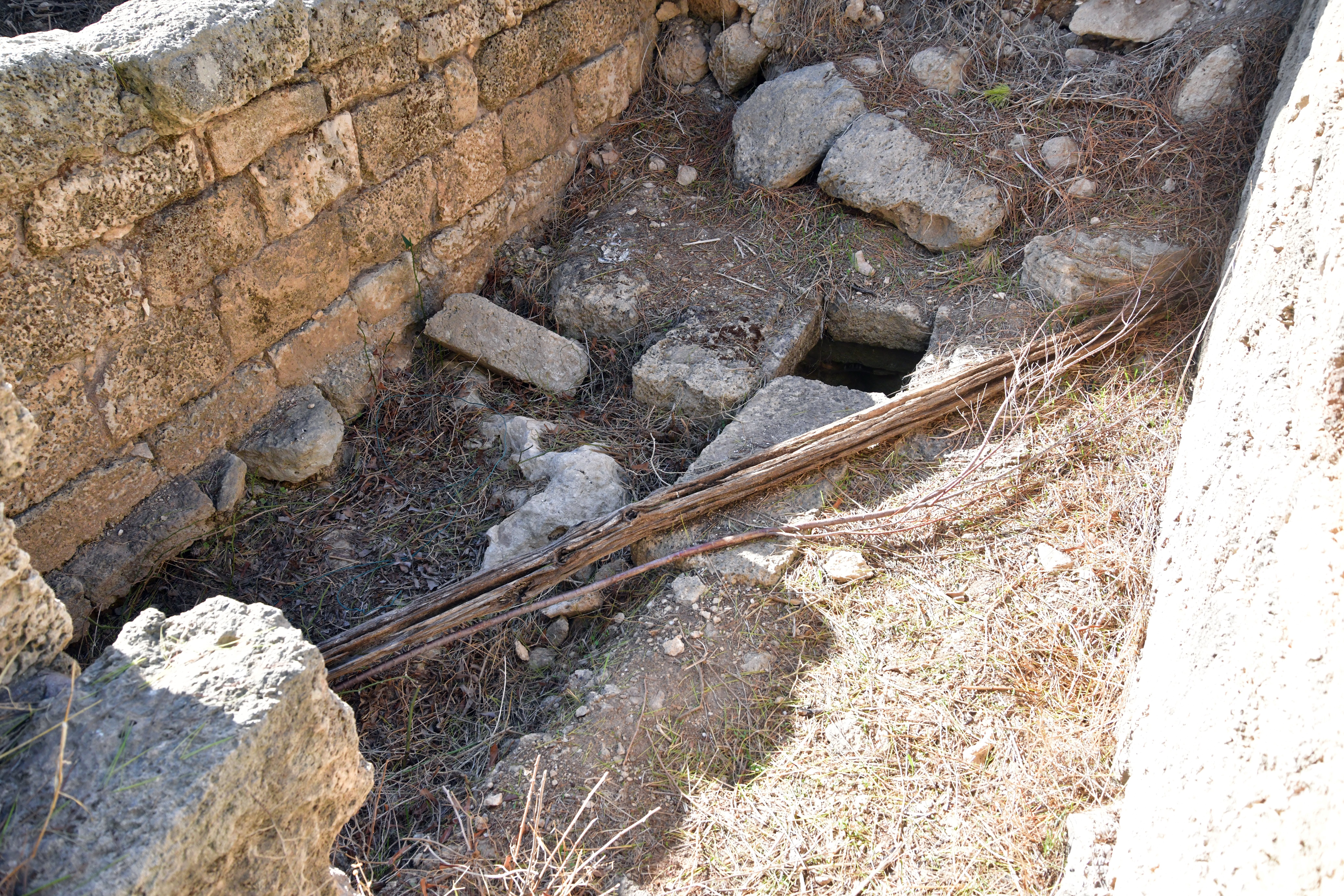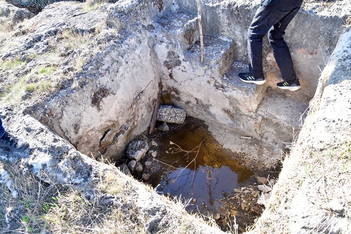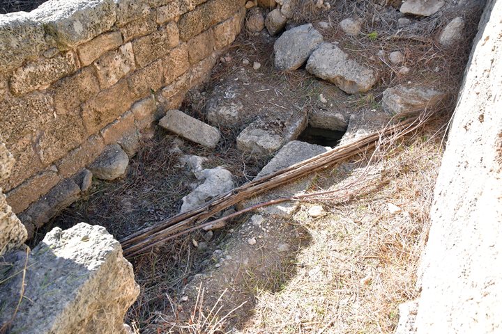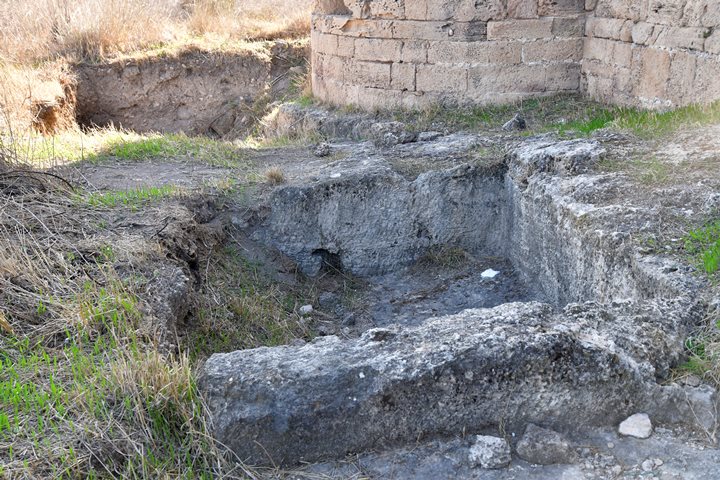 A square structure, built in the ground, is near the vault. Since its walls are not plastered, it rules out the function of holding water.