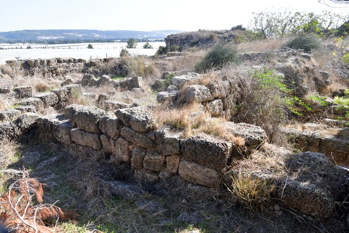The site is located on a sandstone (Kurkar) hill, 25M above sea level.  An ancient road used to pass at the eastern side of the site, and the new Haifa-Tel-Aviv highway was constructed at the same location. When you drive by the site on the highway, you can easily see the eastern side of the Crusaders fortress – which is the best preserved wall. The Byzantine village is located several hundred meters to the south of the fortress.