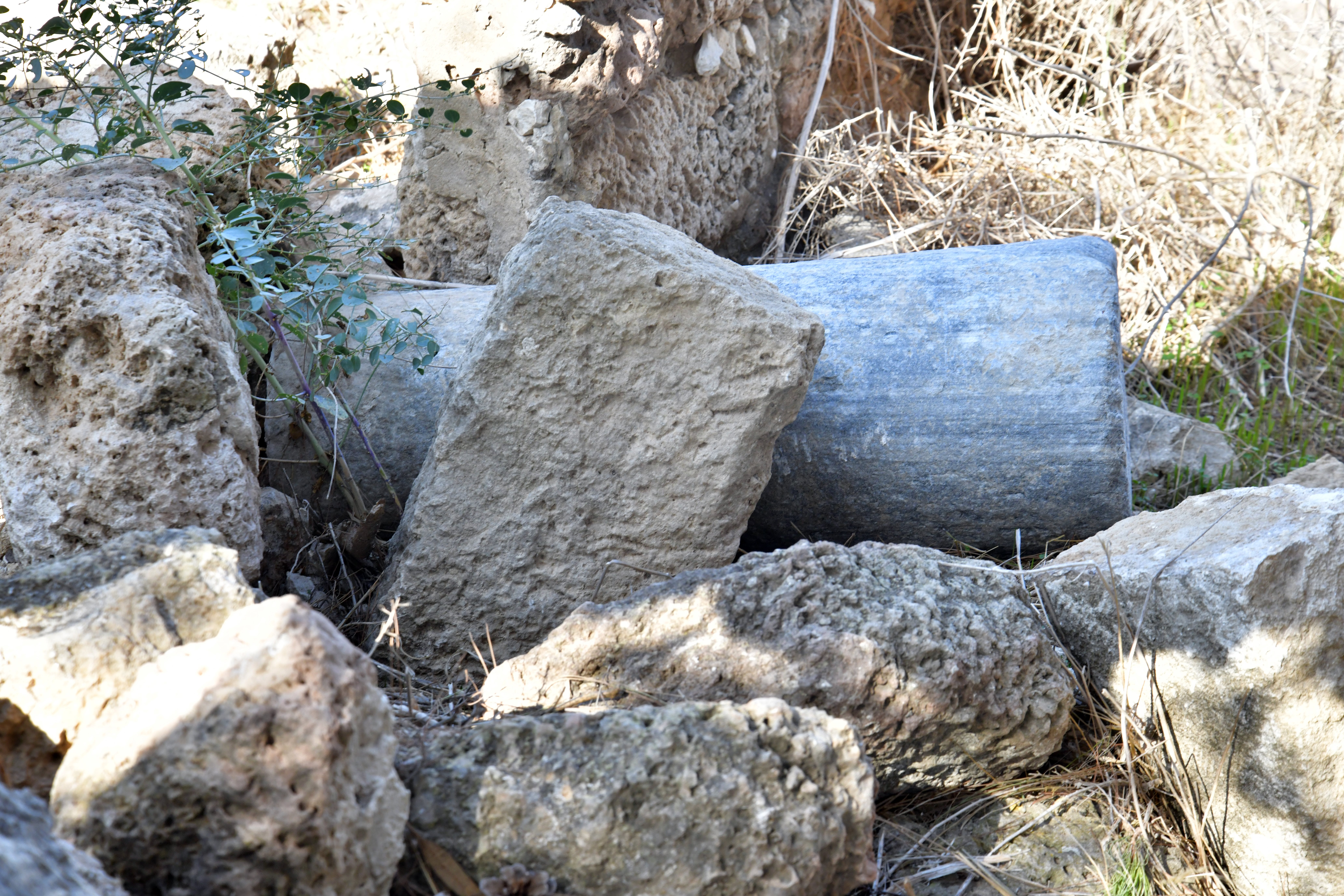 Among the rubble is a marbel pillar. It was probably reused from one of the Byzantine period structures that were found in the area.