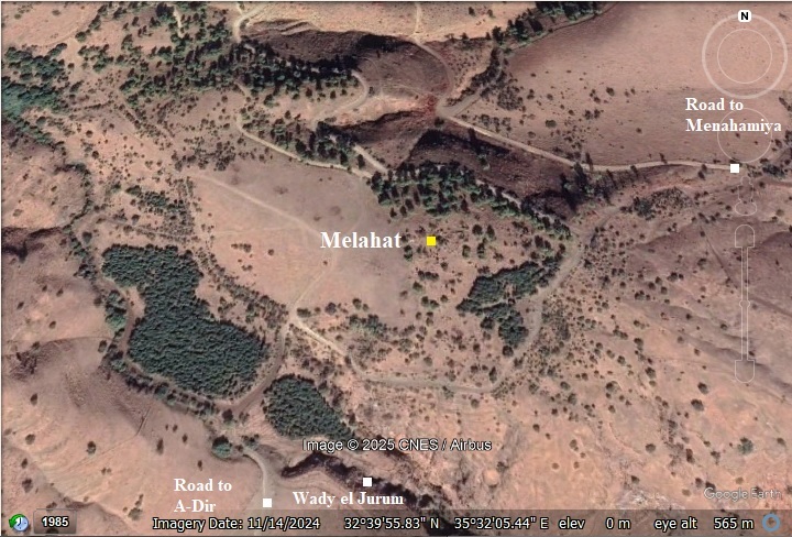 Horvat Melahat (Sheikh el-Muweilihat) is an archaeological site situated west of the modern village of Menahamia in the Jordan Valley. The site occupies the edge of a ridge that marks the mid-slope of the eastern ascent from the Jordan Valley. The area surrounding the site is dotted with several springs, likely crucial for sustaining ancient settlement. The ridge overlooks the northern bank of Wadi el-Jurum, whose Arabic name means “Valley of the Eroded Land.” This deep basalt canyon, known for its dramatic landscape, continues to attract hikers today.