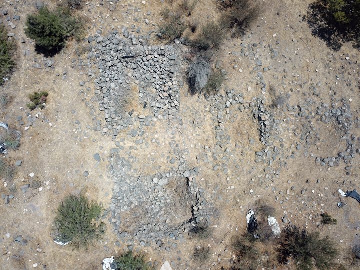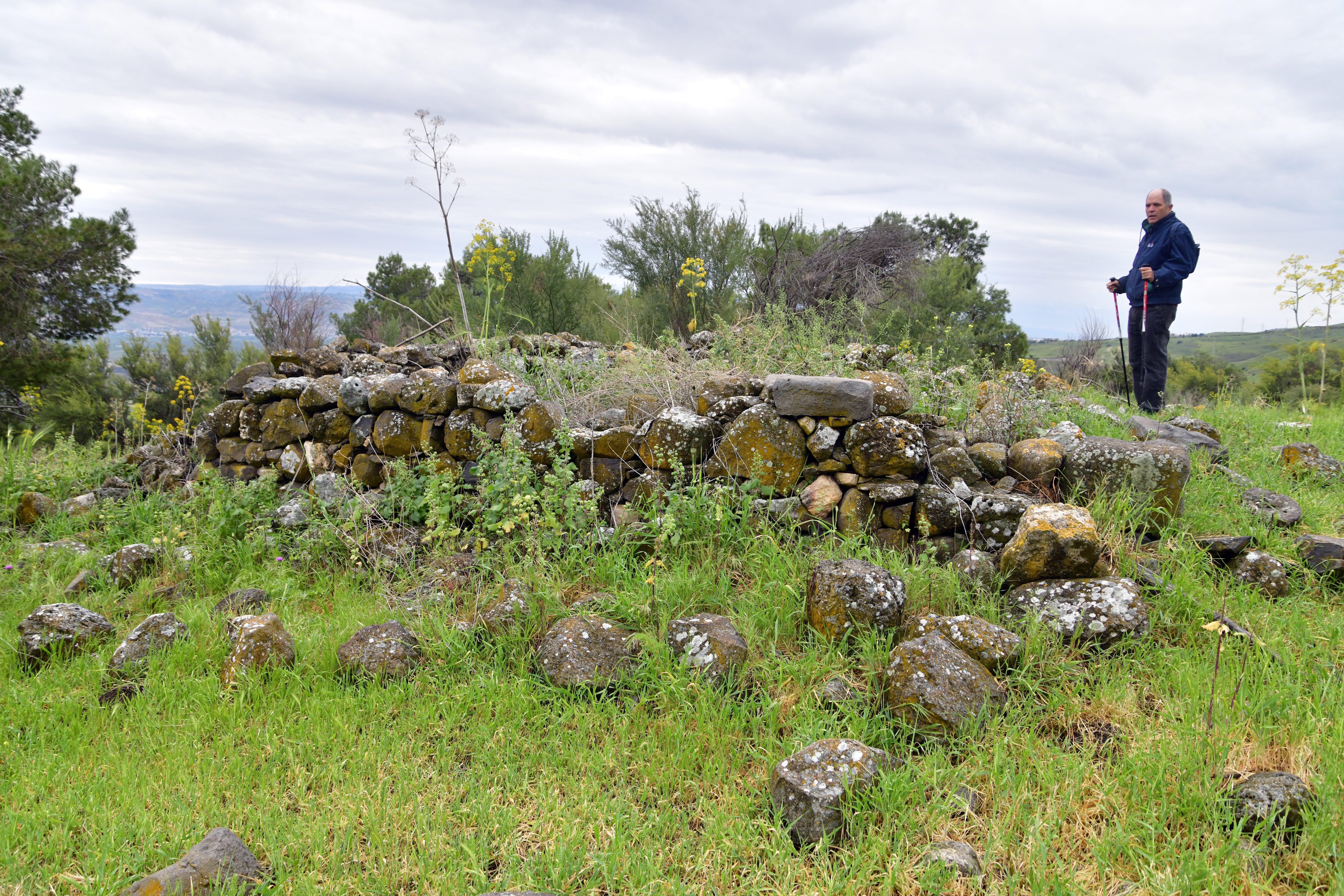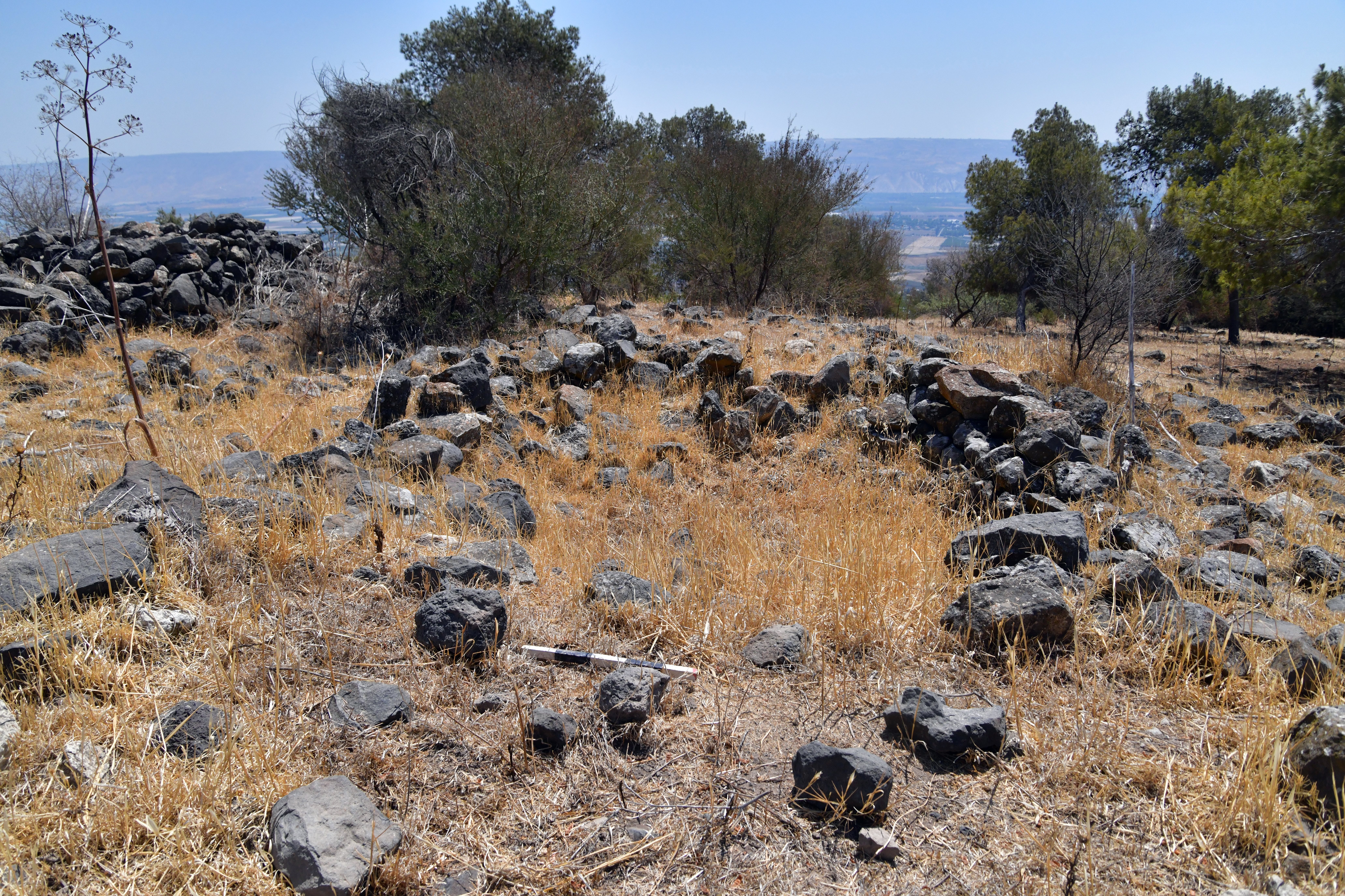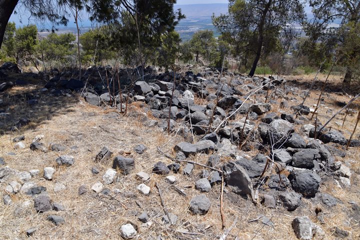 On the summit of the ridge are the remains of about a dozen ancient structures, their foundations built from local basalt stones. These may have formed part of a small fortified outpost or observation point, guarding movement along the ridge and overseeing access to the valley below. Our surface survey conducted at the site have revealed pottery sherds from multiple periods, including the Bronze and Iron Ages, as well as the Roman and Byzantine periods—indicating intermittent or continued occupation over a long span of time.