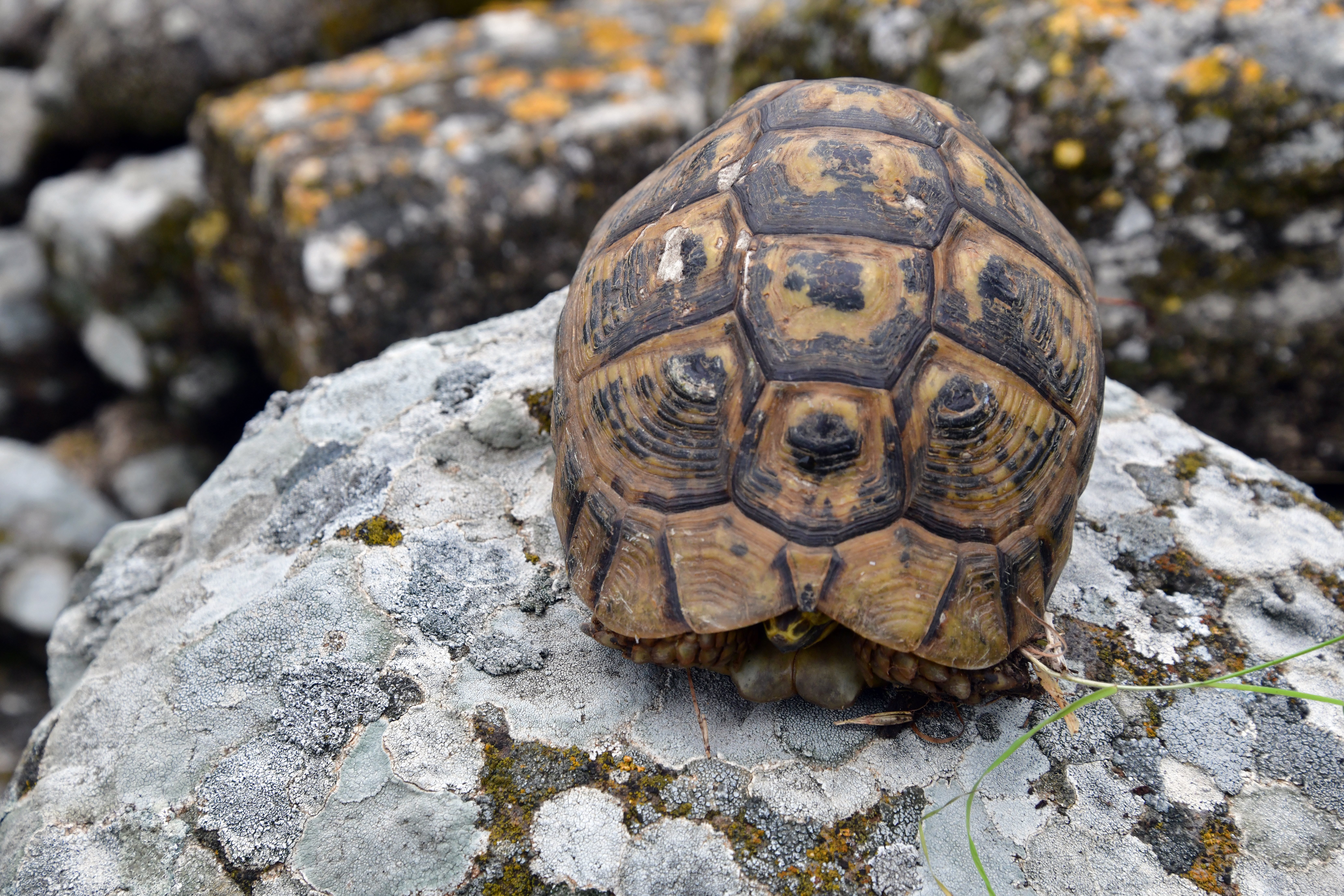 A closer view of the shy turtle: