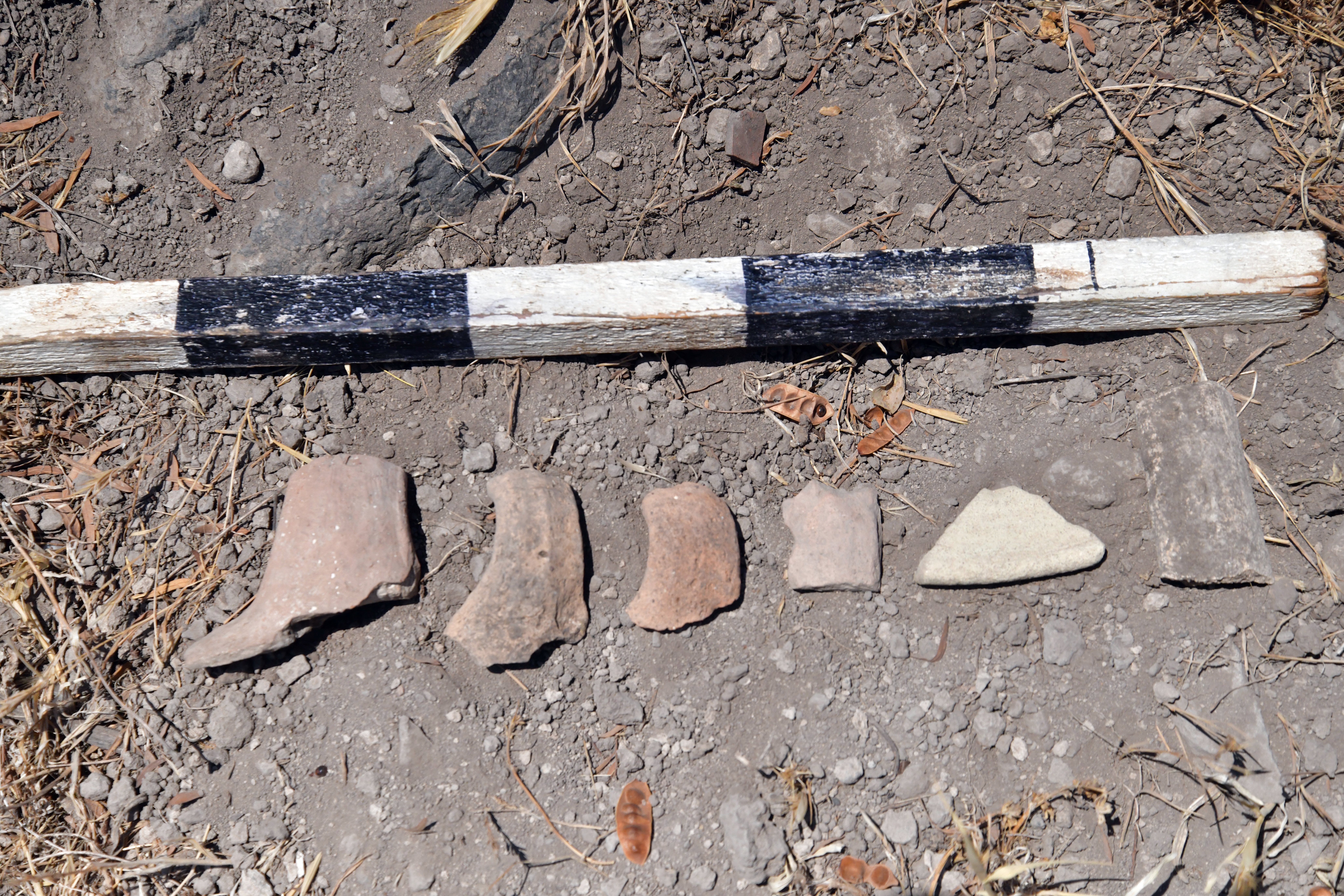 Pottery sherds we collected for dating purposes indicate that the settlement was occupied during the Bronze and Iron Ages, as well as Roman and Byzantine periods.