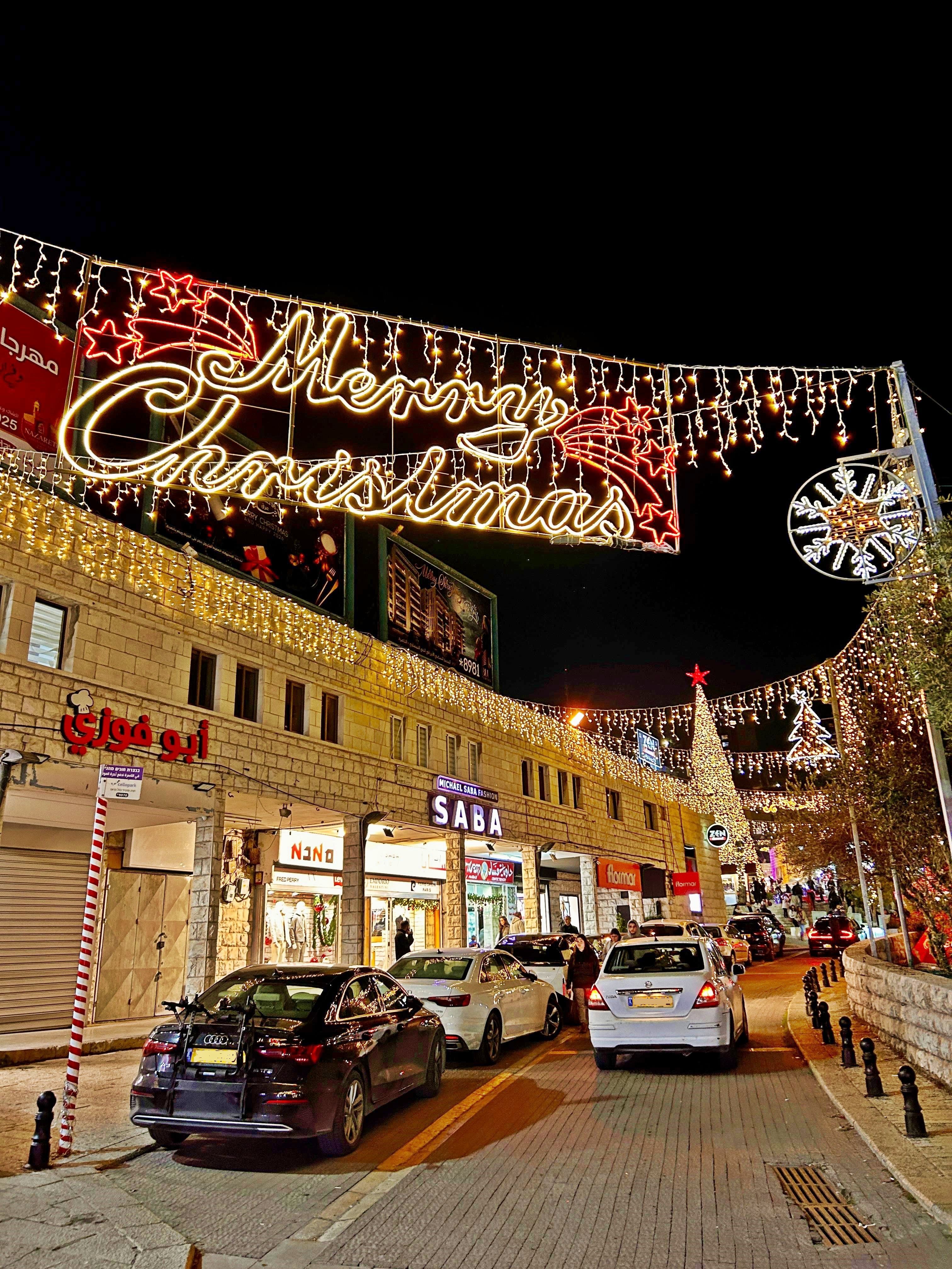 Nazareth has its own massive, iconic Christmas tree at City Hall and near the Basilica of the Annunciation. This is the largest Christmas tree in the Middle East!