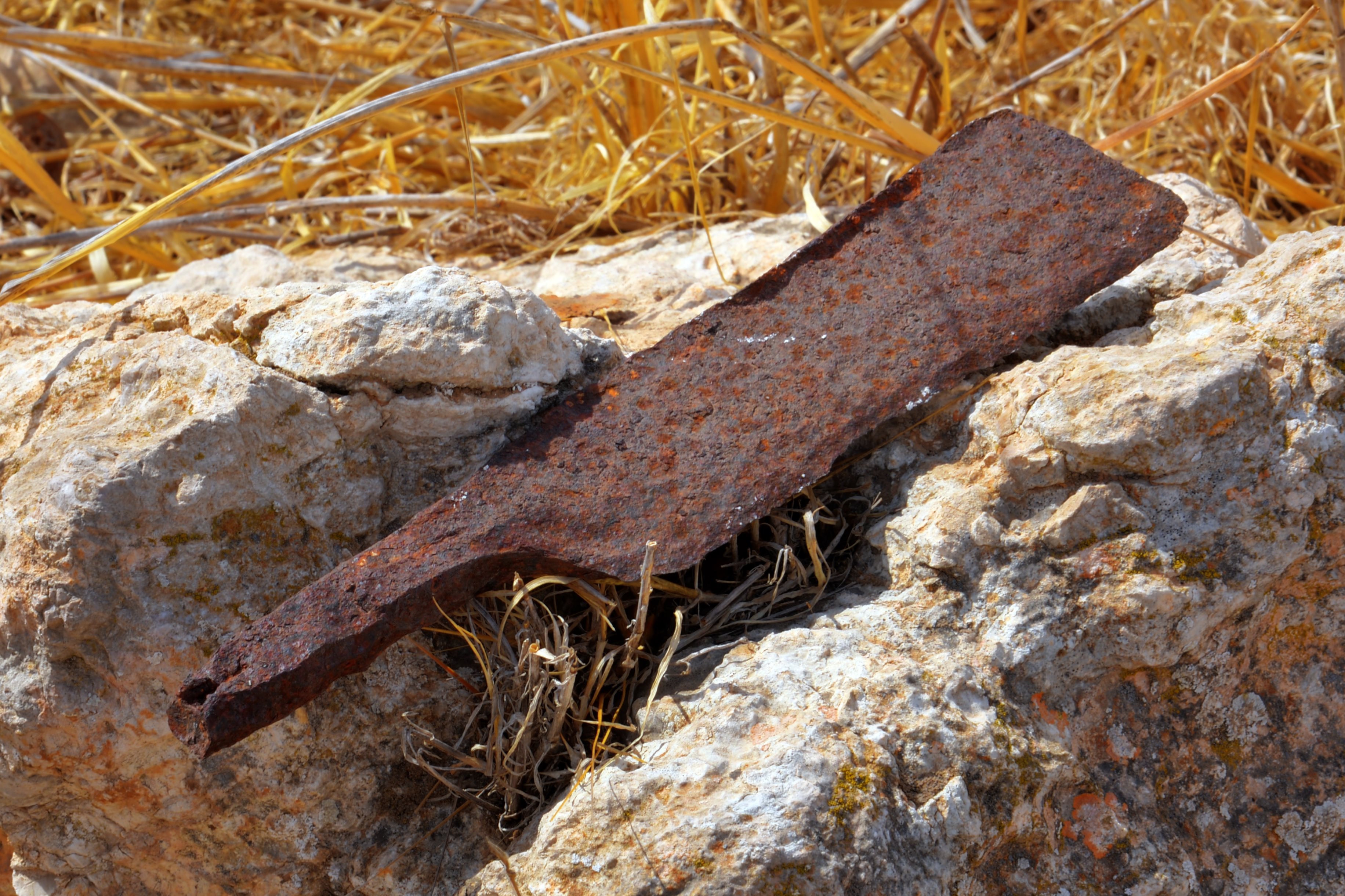 An iron butcher’s axe (meat cleaver) was also found. Its blade is 18cm long and the handle adds 10cm.