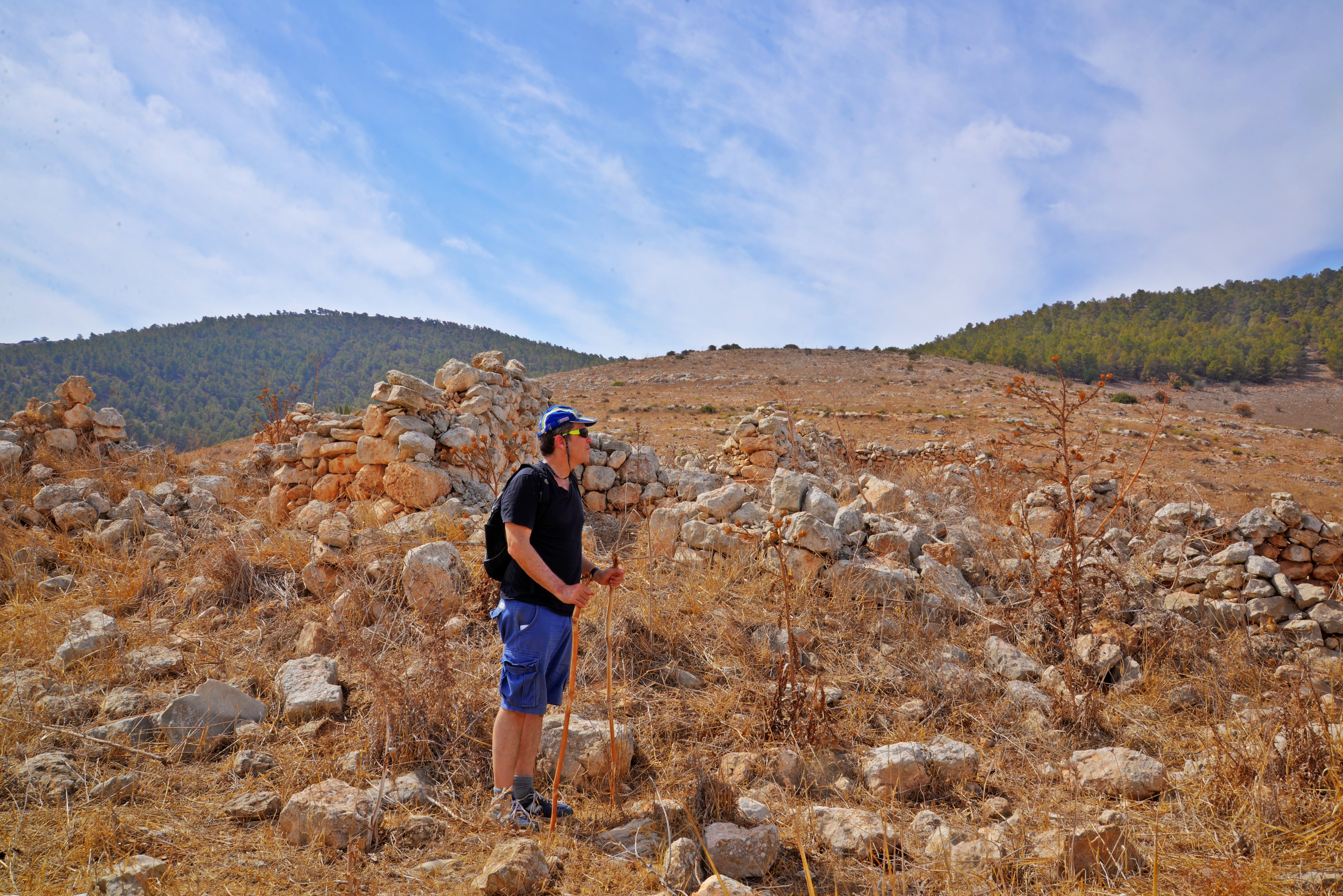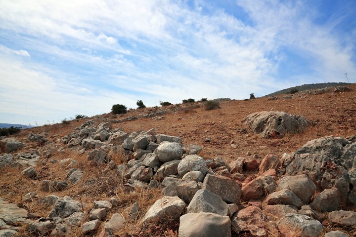 Evidence of intensive land cultivation is visible throughout the site. Local farmers managed the rugged terrain by clearing fieldstones and arranging them into terraced systems, a common practice for maximizing arable land on the Gilboa slopes.