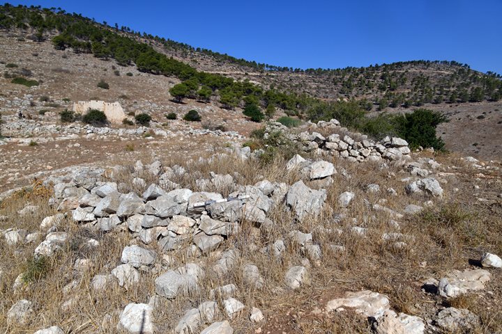 On the hill east of the “Mukhtar’s house” are remains of a rectangular watch tower, built with large rocks. According to A. Cohen (2010, site 2) its size is 4m by 2m.