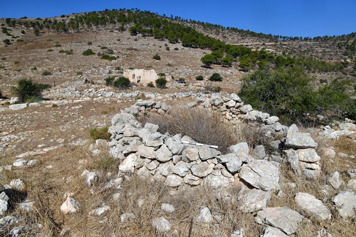 a) Polygon #1 (area SW of the ruined Mukhtar house) – Found ruins of a Ottoman period farmhouse with a unique stone-built hen house, an adjoining structure, a large cistern and cupmark.