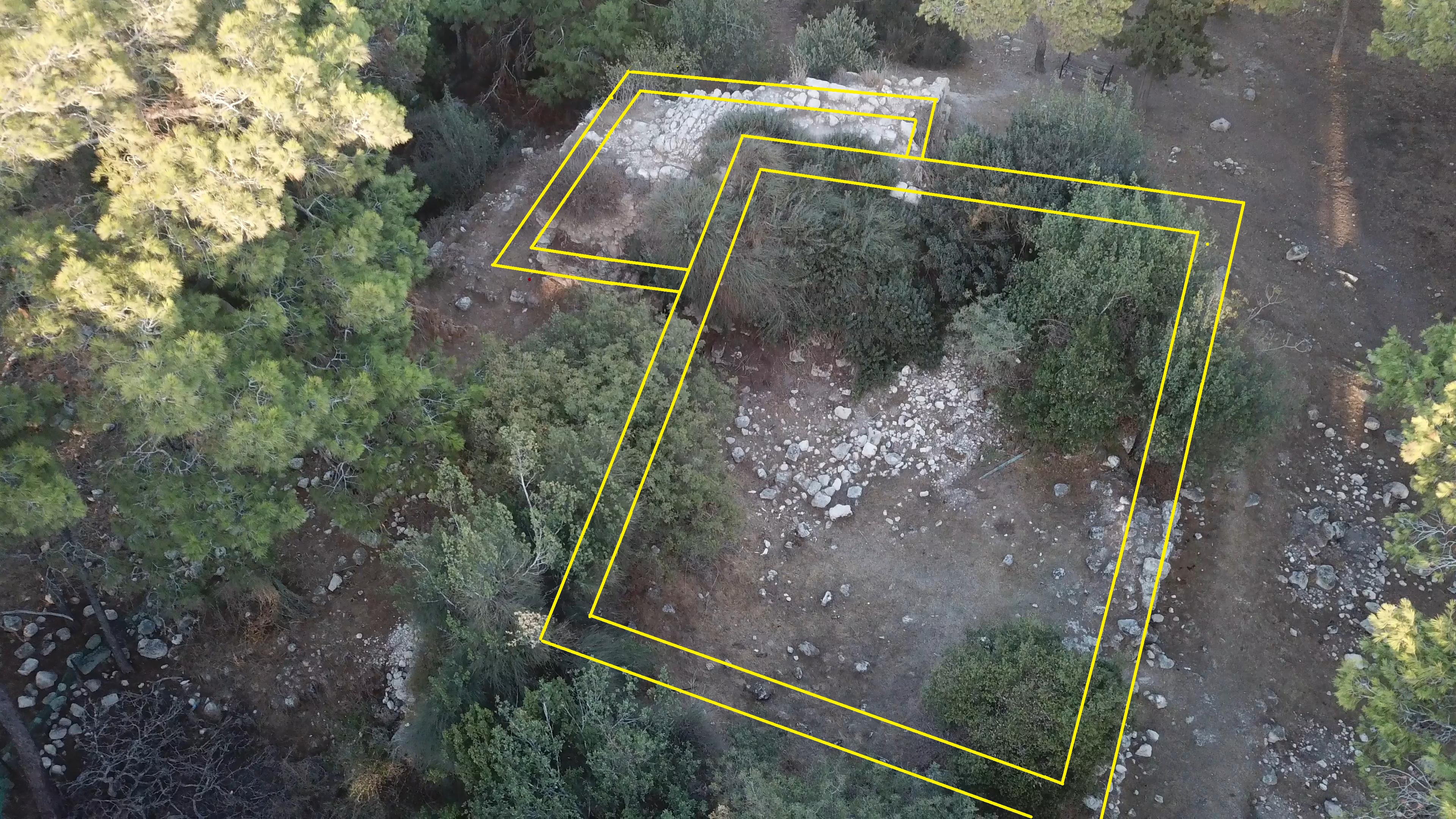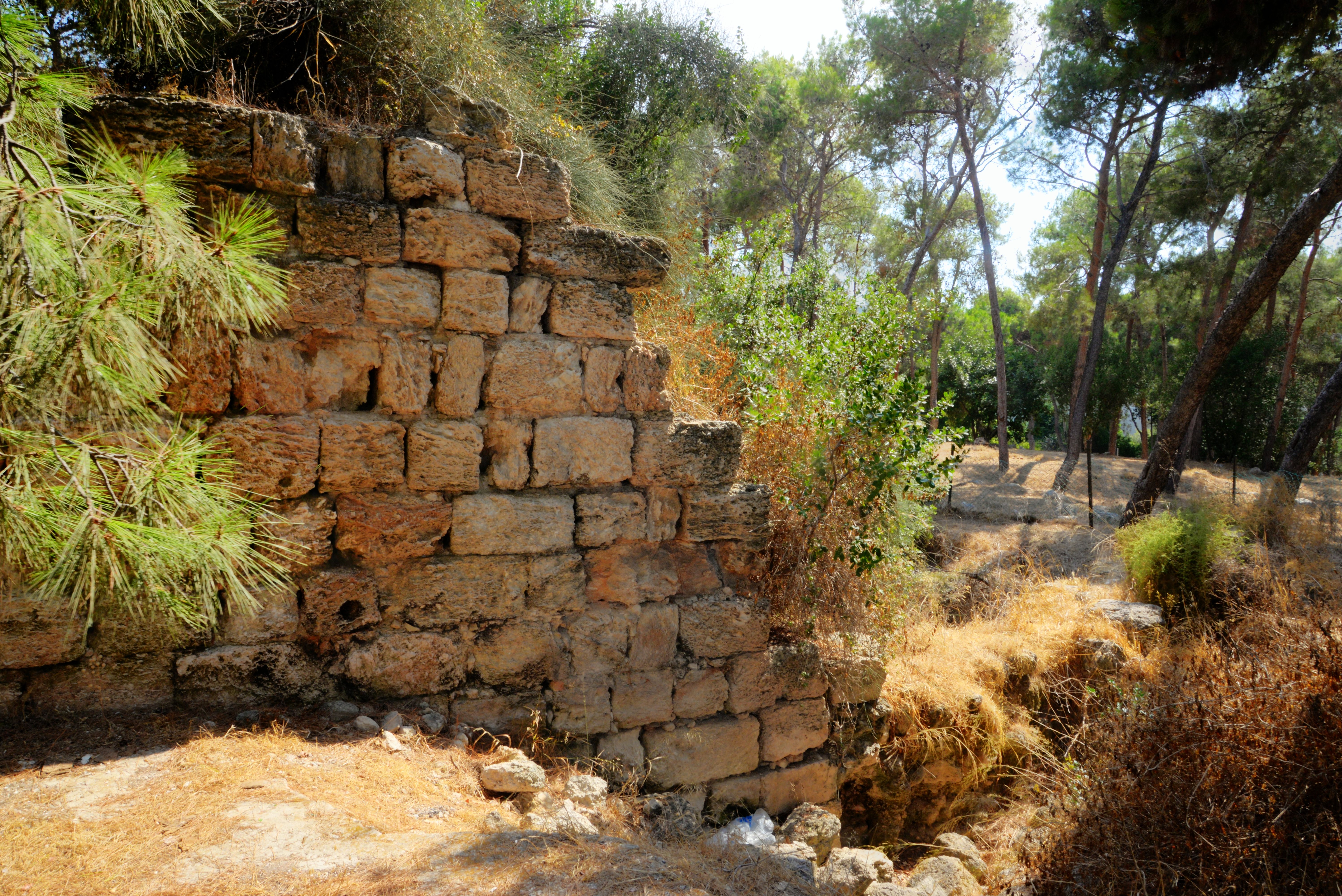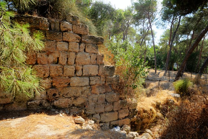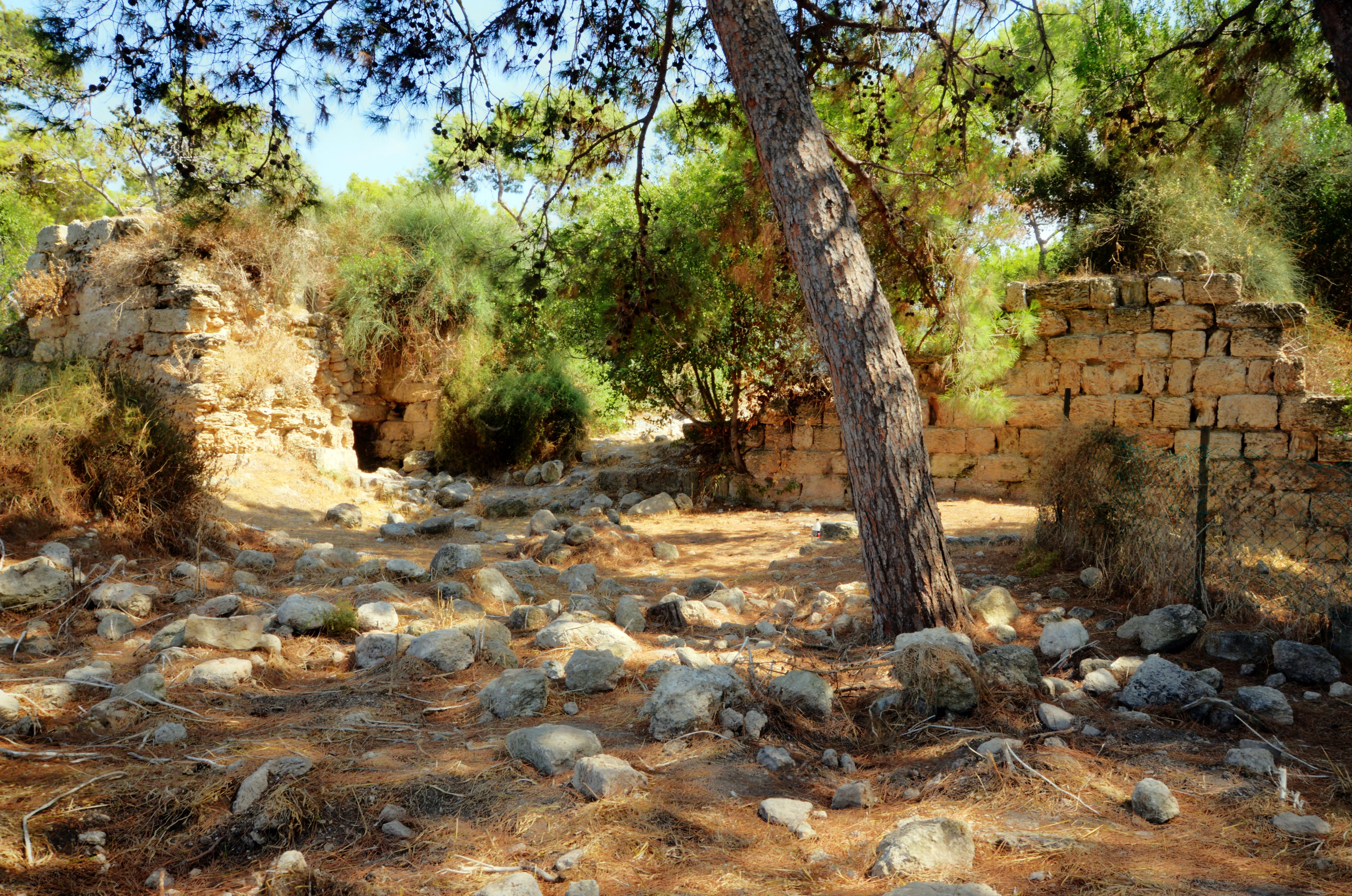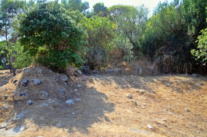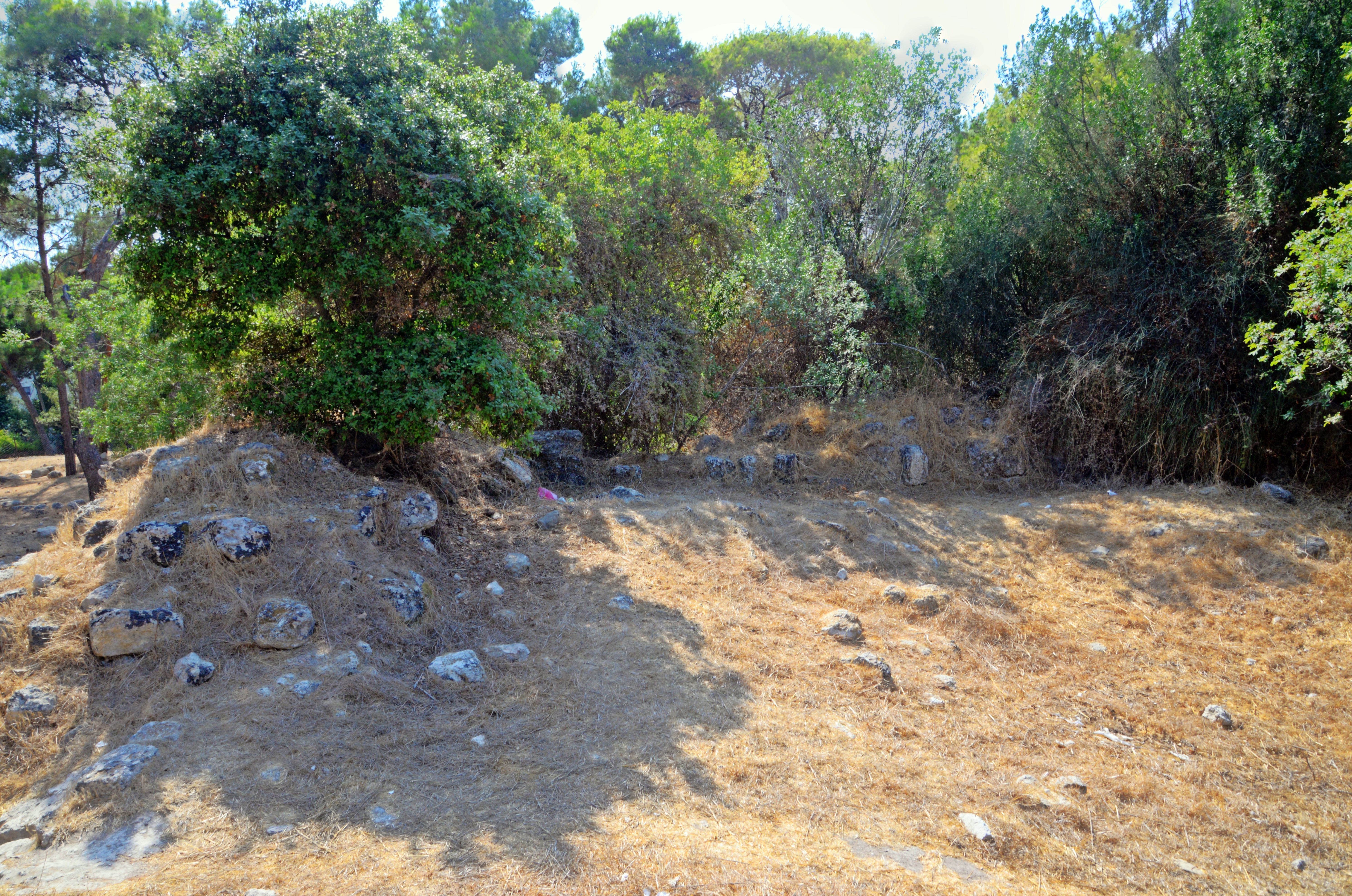 The fortress stands on a flat, pine-covered plateau, with unexcavated remains from earlier periods beneath the surface. The ancient site covers an area of 20 dunam.