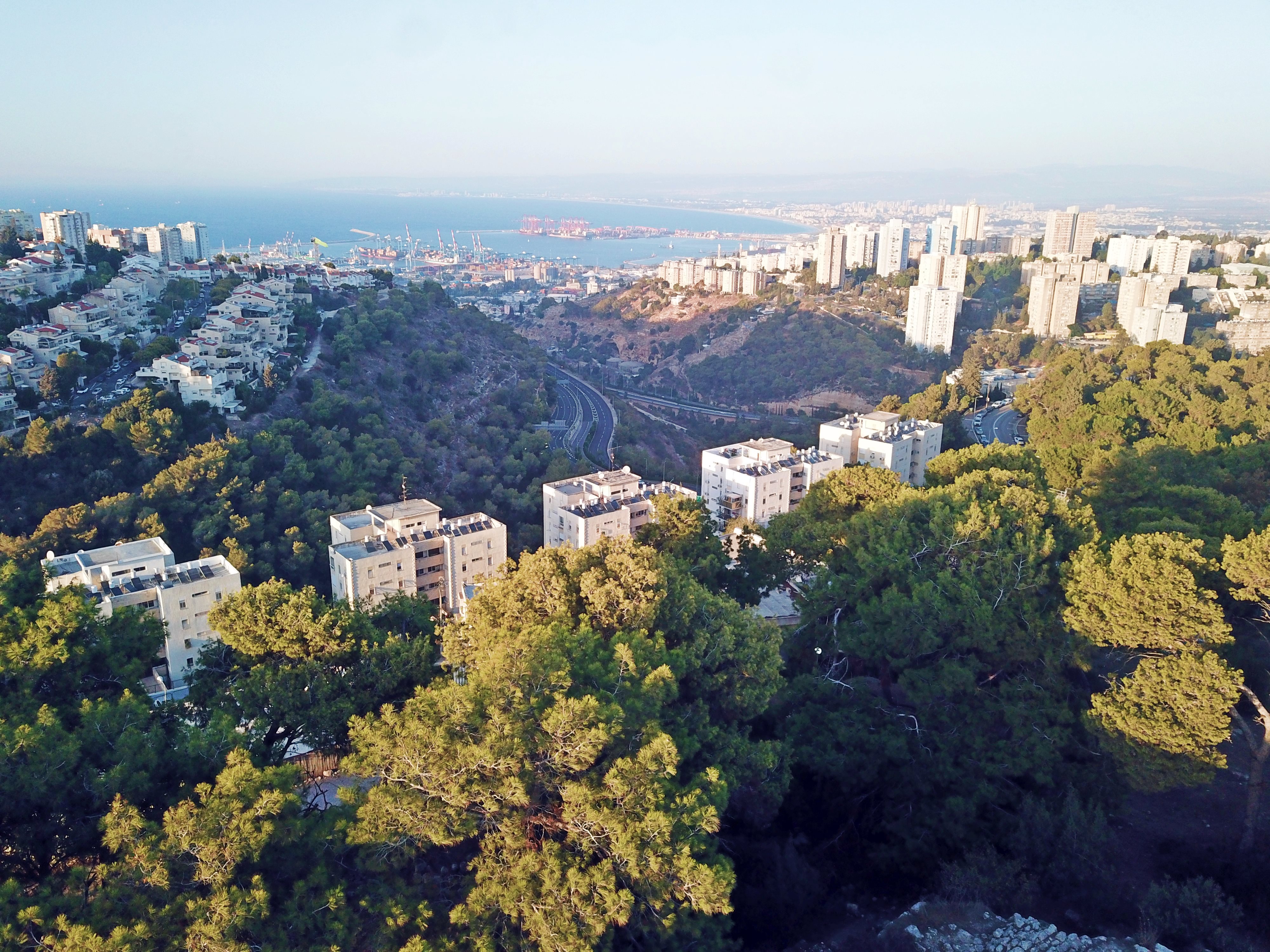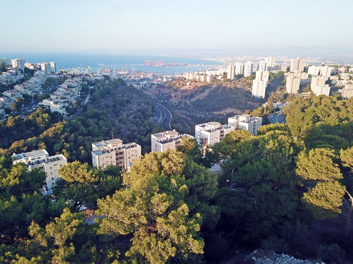 From the edge of the summit, the view is expansive. The coastal road and the bay of Haifa can be seen from the site.