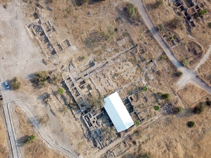 The following drone view towards the south shows a number of excavated sites in Roman/Byzantine Tiberias. The bathhouse is adjacent to the Cardo Maximus and to the city market.