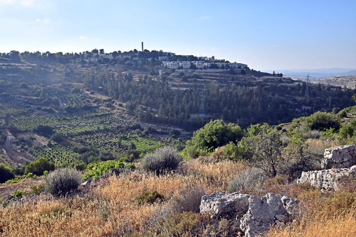 In the middle of the background, is the community settlement of Elazar, named after the Maccabee hero who was killed during the battle while attacking the war elephant.