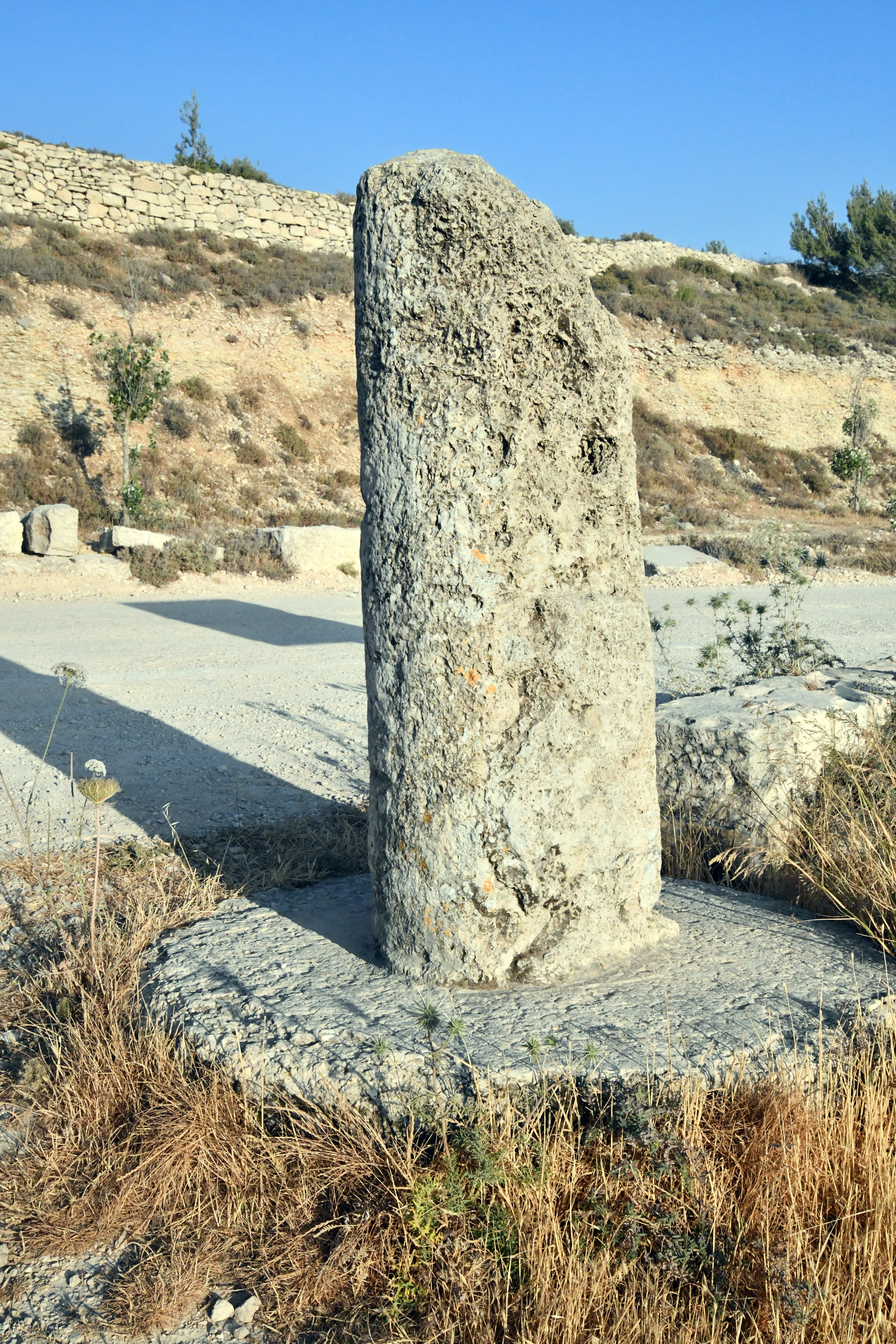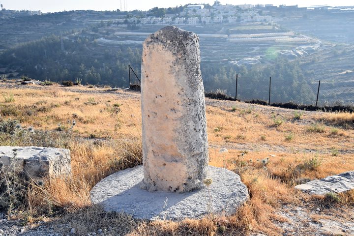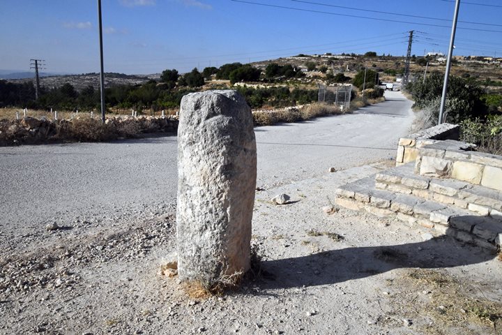Roman Milestone #12 stands on the side of the road, 0.5 km north of the highway to Beth Zechariah and Rosh Zurim.