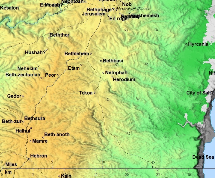 Map of the area – during the Israelite to Roman periods (based on Bible Mapper 3.0)